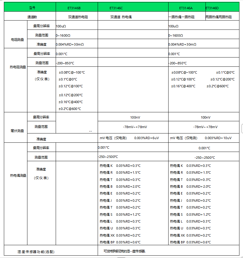 ET3146高精度测温仪提供全方位的测量功能和多元化的价位,拥有更出色的测量精度和分辨率,良好的用户体验;3.5寸TFT液晶屏显示,读数清晰、显示简洁大方,方便用户根据自身需要进行选购。