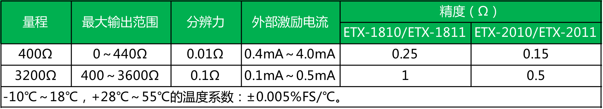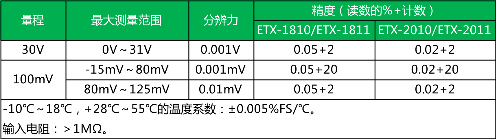 ● 精度:ETX-2010/2011型为0.02%,ETX-1810/1811型为0.05%;