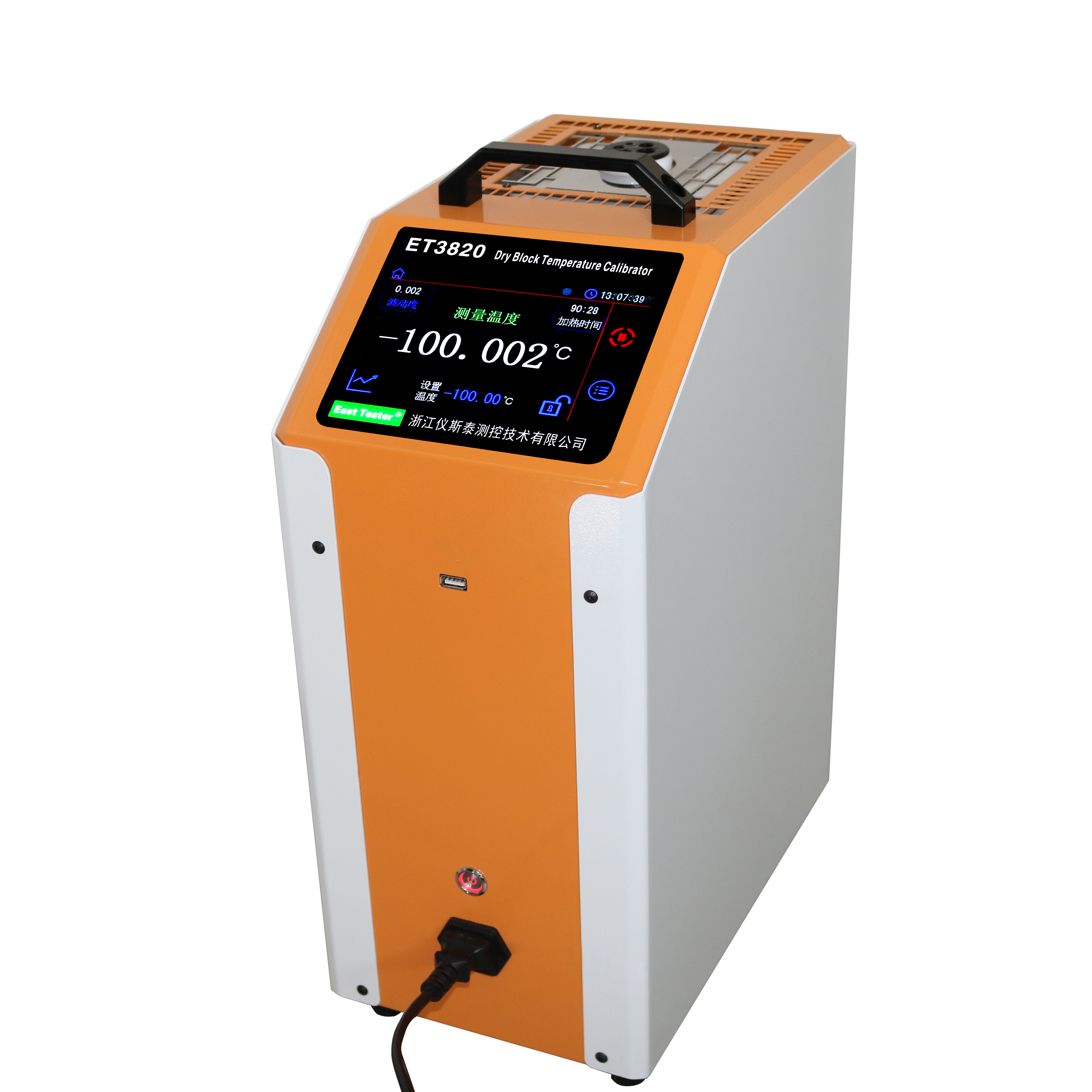 ET3820超低温系列干体炉是一种便携式干体温度校准仪器,是我公司最新研发的高性能、高精度的产品。本系列产品可以提供稳定的温场(-100℃~50℃),用于校准各种温度传感器。广泛应用于电力、石化、计量、冶金、制药、生物科技、食品、机械、交通等行业。ET3820超低温系列是ET3820系列干体炉中的最新成员,其独特的结构设计以及专用的制冷核心能保证炉芯温度快速降低至客户所需温度(低至-100℃),并持续保持稳定。