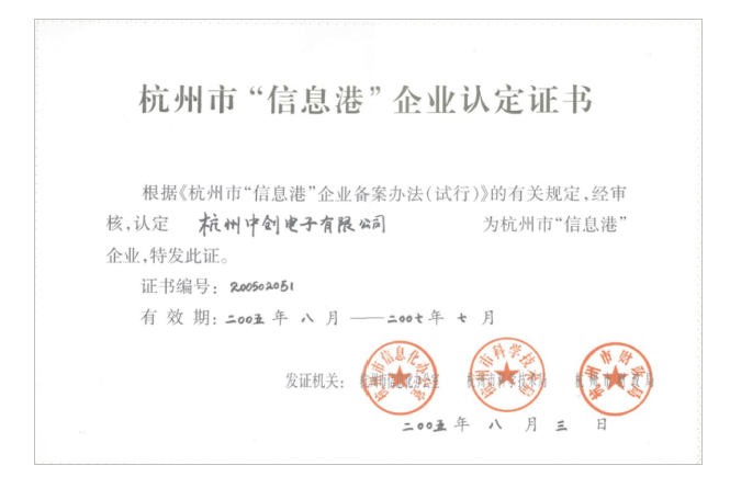 企业备案办法(试行)》的有关规定,经审核,认定杭州中创电子有限公司为杭州市